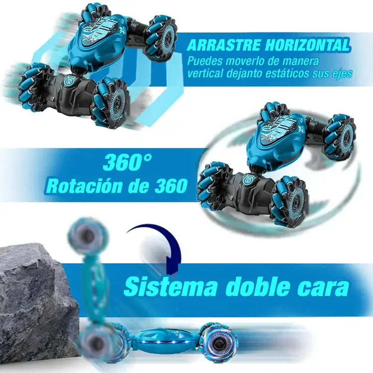 Con luces brillantes, música emocionante y rotaciones extremas, este auto convierte cualquier espacio en una pista de acrobacias.